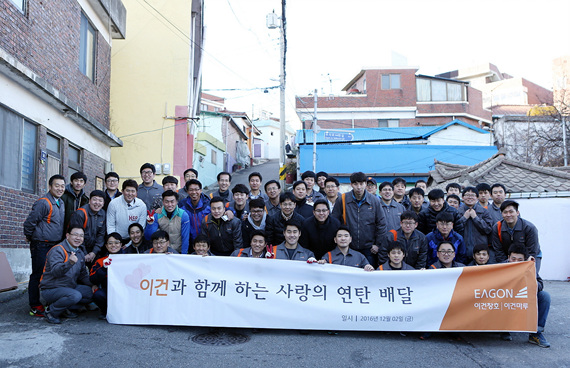 ‘사랑의 연탄 배달’은 이건 관계사가 지역사회에 책임과 역할을 다하기 위해 2009년부터 7년 넘게 이어 오고 있는 나눔 활동이다. 동절기 한파를 대비해 주거 시설이 절대적으로 취약한 쪽방촌 주민이나 독거노인, 영세가정, 장애인 등 지역 소외 이웃들에게 연탄을 지원해 왔으며, 올해까지 전달한 연탄의 누적 장 수만 해도 4만여 장에 이른다.