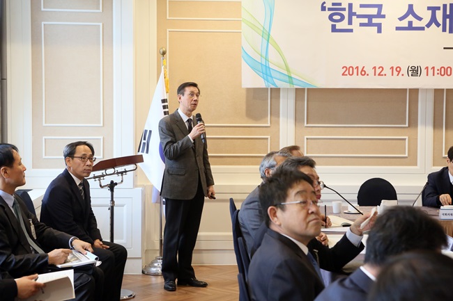 19일 국회철강포럼 주최로 국회 본관 귀빈식당에서 열린 '한국 소재사업 선진화 방안' 간담회에서 민동준 연세대 교수는 4차 산업혁명의 새로운 패러다임의 변곡점인 현재, 철강업도 정부차원의 혁신적 전략을 수립해야 한다고 말했다.
