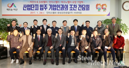 서산시는 24일 성연면 인더스밸리 내에 위치해 있는 광성강관공업에서 산업단지 입주기업인과의 조찬간담회를 열고 기업의 애로사항을 청취하며 상생발전 방안을 협의했다.