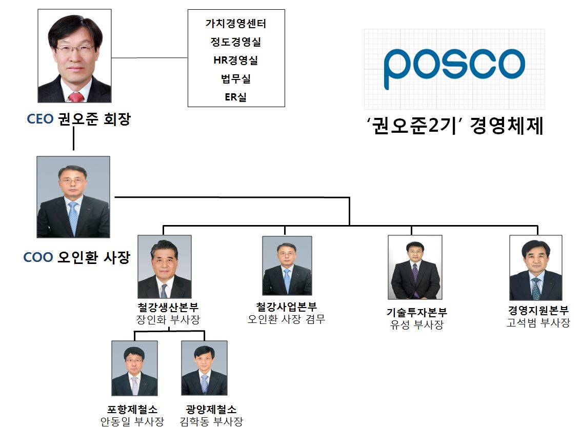 이번 조직개편의 가장 큰 특징은 포스코의 핵심사업인 철강사업 운영을 책임지는 COO(Chief Operating Officer, 철강부문장) 체제를 도입한다는 점이다. 권오준 회장은 대표이사 회장으로 미래 성장동력 확보와 비철강부문 개혁 등 그룹 경영에 집중하고 새로운 COO가 철강사업 전체를 책임 경영토록 한다는 복안이다. 또한 COO 체제 도입은 경영자 훈련 프로세스 활성화 방안의 일환이기도 하다.