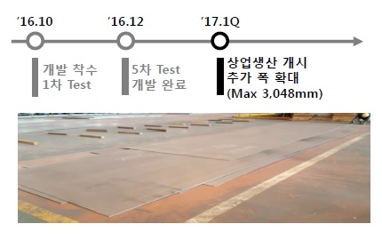 또 4.5mm 초극박물을 개발해 신규시장 개척에 나섰다. 동국제강의 세계 최고 압연기술을 활용했으며 차별화된 제품 공급으로 수익성을 개선했다. 후판은 통상적으로 6mm 이상이지만 동국제강은 5mm까지 상업생산에 나서고 있다. 올해 1분기에는 추가 폭을 최대 3,048mm까지 확대할 계획이다.