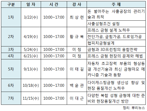 국내 최고 금형기술사들의 현장기술과 전문지식을 배울 수 있는 ‘프리미엄 금형기술 아카데미 2017’이 교육 일정을 공개했다.