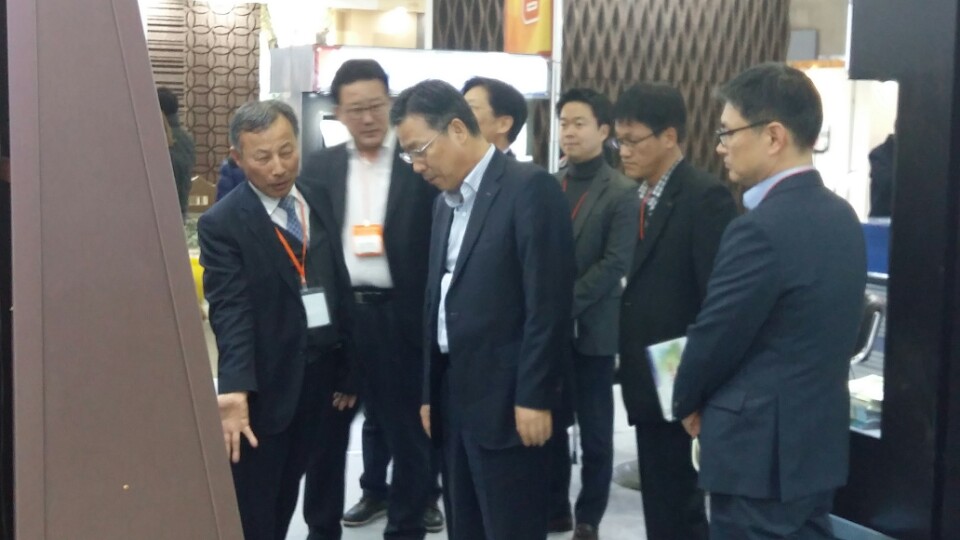 이날 경향하우징페어를 방문한 전중선 사장은 주요 실수요업체인 주신기업을 가장 먼저 방문한 후 경향하우징페어 참가 업체를 방문해 수요 개발 가능성에 대해 알아보는 시간을 가졌다.
