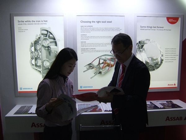 대표적인 강종으로는 표면의 고경면성에 요구되는 금형재로 국내 대기업에 공급되는 'STAVAX ESR', 세계유수 자동차회사에 공급되는 자동차 다이캐스팅용 'DIEVAR', 톤당 8천만원 이상에 판내되는 특수용도의 분말강 'ASSAB PM 60' 등을 국내 고객사에 소개했다.