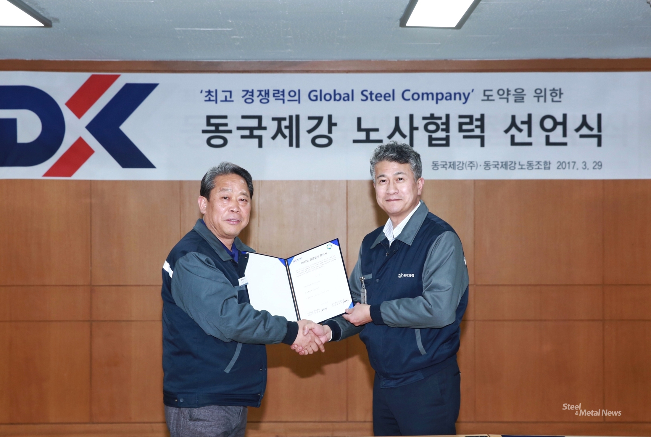 동국제강 노사(대표이사 장세욱, 노조위원장 박상규)는 3월 29일 인천제강소에서 ‘2017년 노사 협력 선언식’을 갖고 임금 인상안에 대해 합의했다.