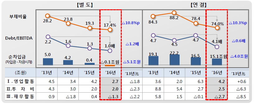 작년 포스코 연결기준 순차입금은 2011년 이후 최저수준으로 차입조달 구조에서 잉여현금 창출 구조로 전환됐다.