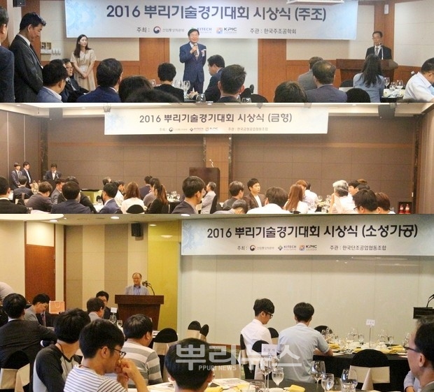 ▲ (위부터)주물조합, 금형조합, 소성가공조합의 2016년 뿌리기술경기대회 시상식. (사진=뿌리뉴스)