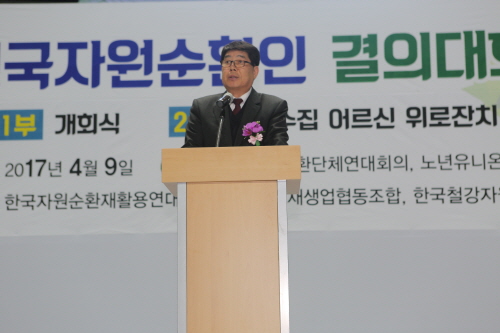 결의대회에 앞서 한국철강자원협회 박영동 회장은 환영사에서 “국내 자원순환 관련 사업규모는 6만여 재활용업체에 약 250만명 종사하고 있으며 이 중 자원순환의 첨병이라 할 수 있는 200여만명의 재활용 수집인들이 있다”며 “이들은 사회계층 중 가장 취약한 고령, 장애, 독거인으로 구성돼 우리 사회에서 가장 소외되고 있다”고 말했다.
