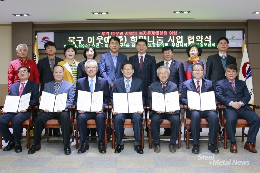 부산사회복지공동모금회장을 겸하고 있는 신정택 회장은 12일 부산 북구청, 북구지역사회보장협의체, 부산 북구 내 13개 동 지역사회보장협의체와 함께 지역 복지사각지대 해소 및 공동체 형성을 위한 북구 이웃애(愛) 희망나눔’사업 협약을 체결했다.
