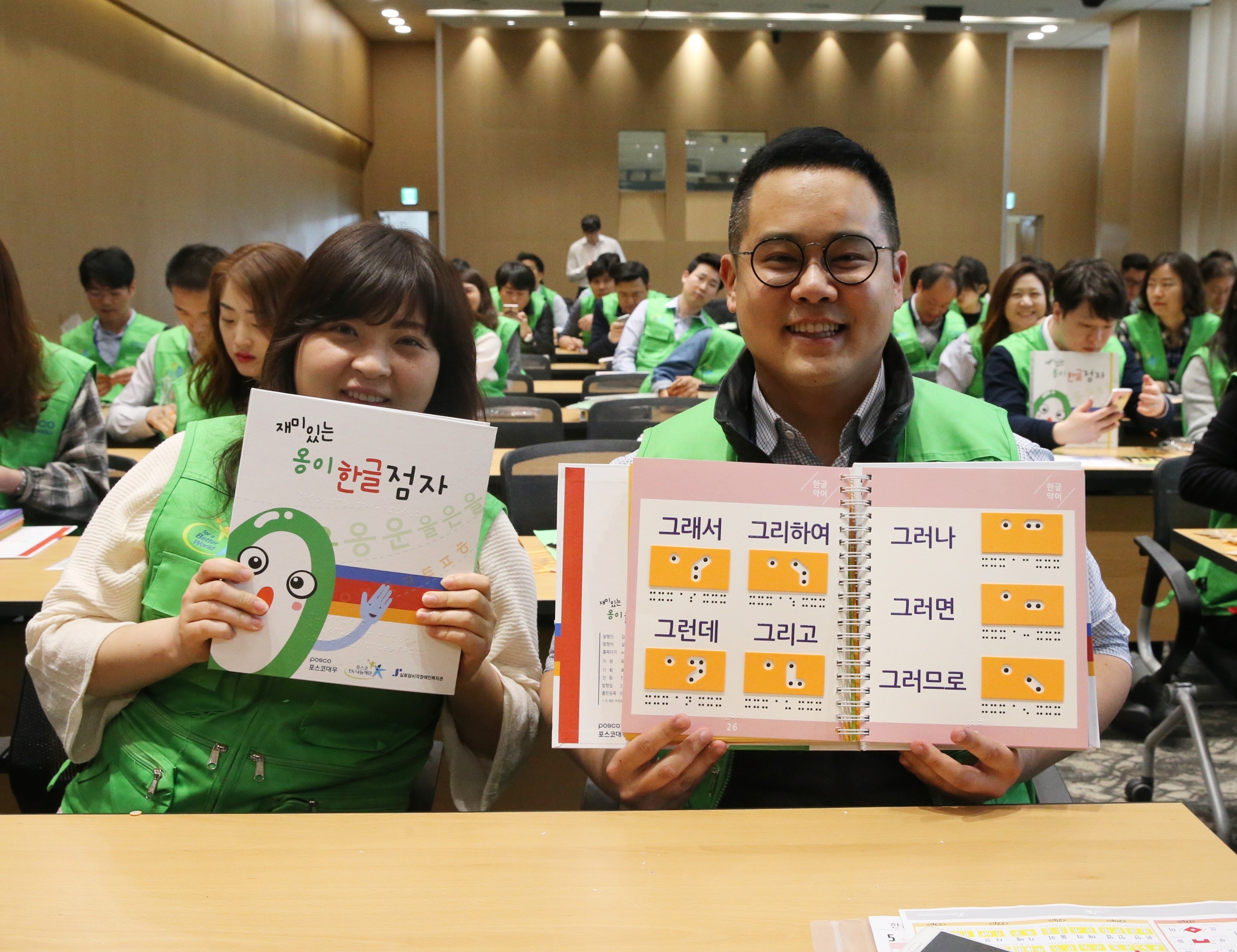 ▲ 포스코대우는 20일 장애인의 날을 맞아 시각장애 청소년을 위한 ‘특수교육 교재 만들기’ 봉사활동을 실시했다