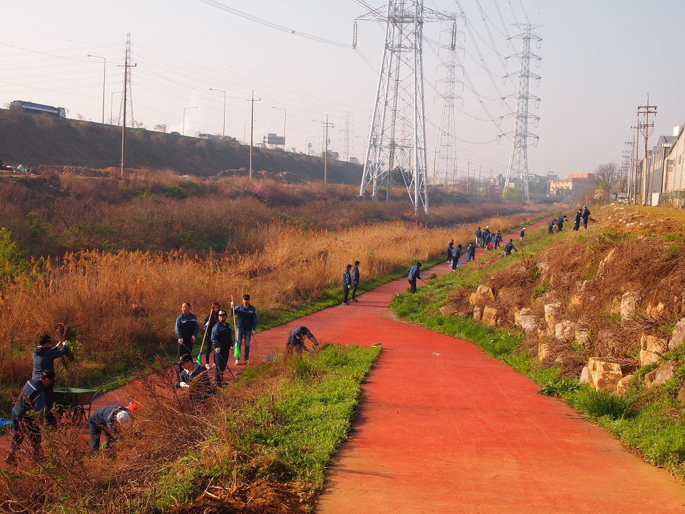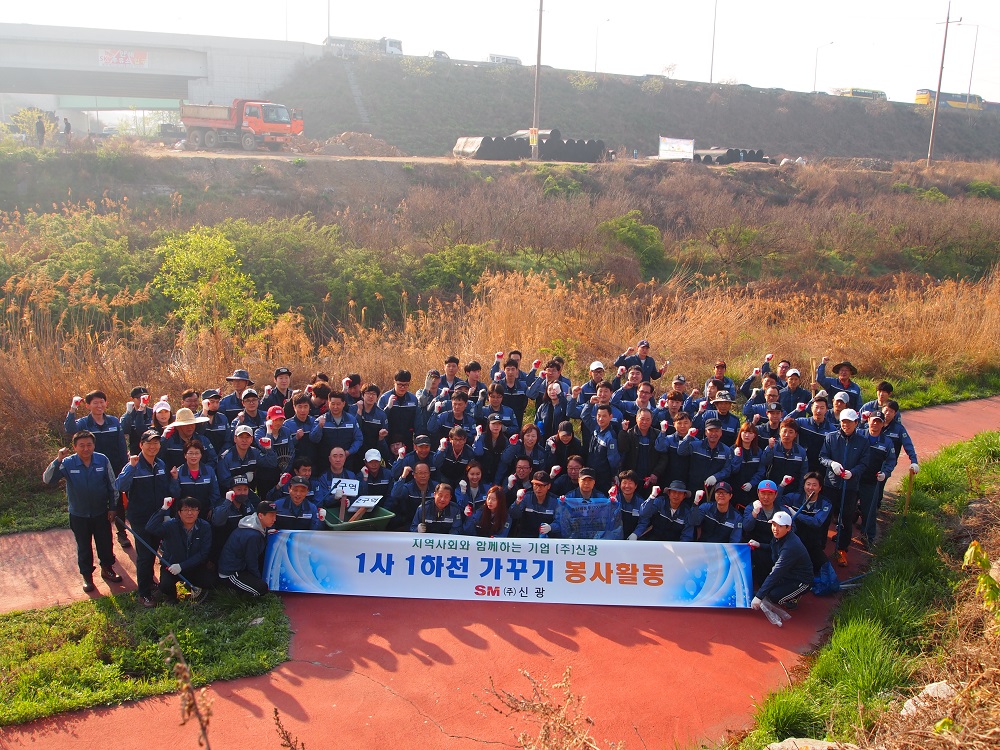 신광직원들은 지난 22일, 시화공단 군자천변의 제방과 하천 일대에 대한 대대적인 제초 및 청소 작업을 벌였다. 특히, 회사와 접한 제방 약 300여평에는 자비를 들여 잔디를 식재하였다. 이를 통해, 잡초성장을 원천적으로 차단함으로써 환경미화뿐만 아니라, 하천제방의 유실방지를 위한 효과도 기대된다.