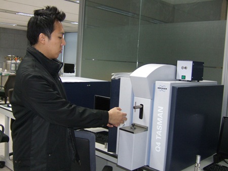 이 회사 마케팅 담당 이민중 과장에 따르면 Q4 타스만 제품의 경우 설치형 금속성분분기로 C, Si, Mn, P, S 등 철의 5대 원소뿐만 아니라 Ni, Cr, B, N 등 재료 중 금속성분을 분석하는 시험분석 장비로 구매 시 대당 평균 6천만~7천만의 자금이 필요하다는 설명이다.(사진 참조)