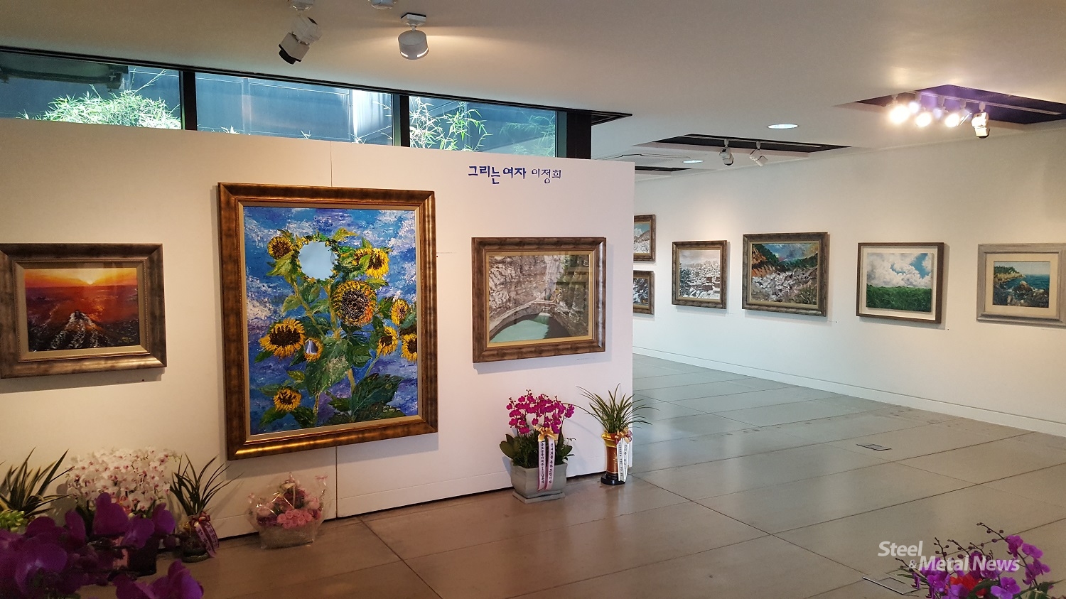 이정희 대표는 지난 2010년부터 그림그리기를 시작했으며 미술전시회와 국제아트페어 등에 꾸준히 참가한 이래 올해 첫 개인전을 열었다. 이번 개인전에서는 총 63점의 작품이 전시됐으며 철강업계 임직원, 고객사 등은 물론 미술전문가도 이번 전시회를 찾았다.