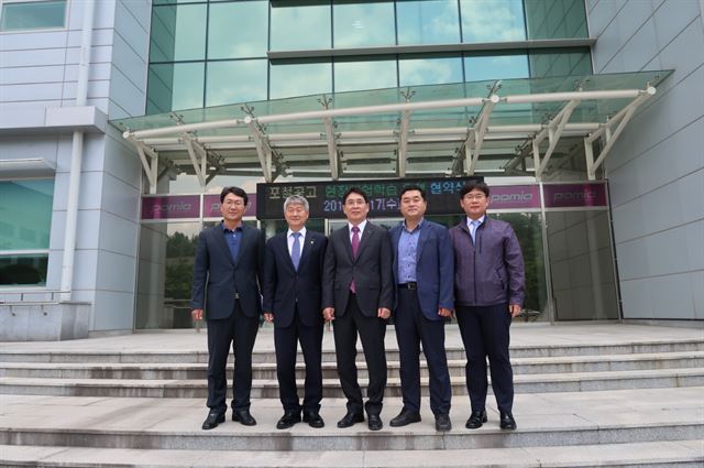 17일 이종봉 POMIA원장과 지역 철강 마이스터고 포항제철고 황재호 교장 등이 참석한 가운데 업무협약식을 가졌다.