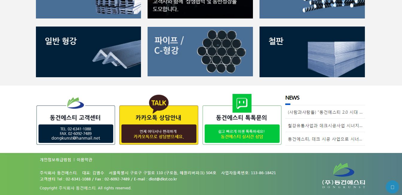 신규 홈페이지에서는 데크플레이트부터 시공사진, 취급 품목 등을 한눈에 파악할 수 있다. 특히 카카오톡과 네이버 톡톡으로 제품에 대한 상담이 가능하다. 이를 통해 고객사가 원하는 제품을 편리하게 상담 받을 수 있다.