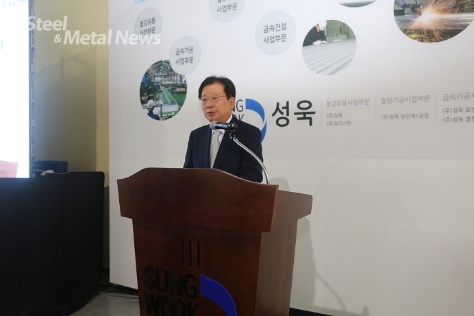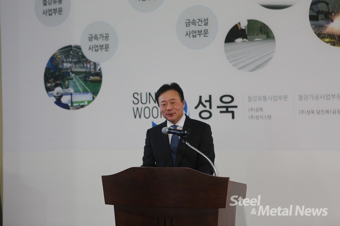 민성기 회장은 인사말을 통해 "이날 행사에 참석해준 관계자분들께 감사드린다"며 "성욱은 고객으로부터 신뢰를 받고 경쟁력 있는 기업을 성장하기 위해 사명을 성욱철강에서 성욱으로 변경하고 경영 효율성을 고려해 4개의 사업부문으로 사업체계를 정립했다"고 말했다.