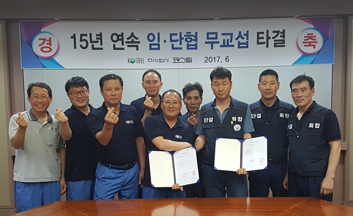 코스틸이 지난 2003년부터 15년 연속 무교섭 임금협상을 타결했다.