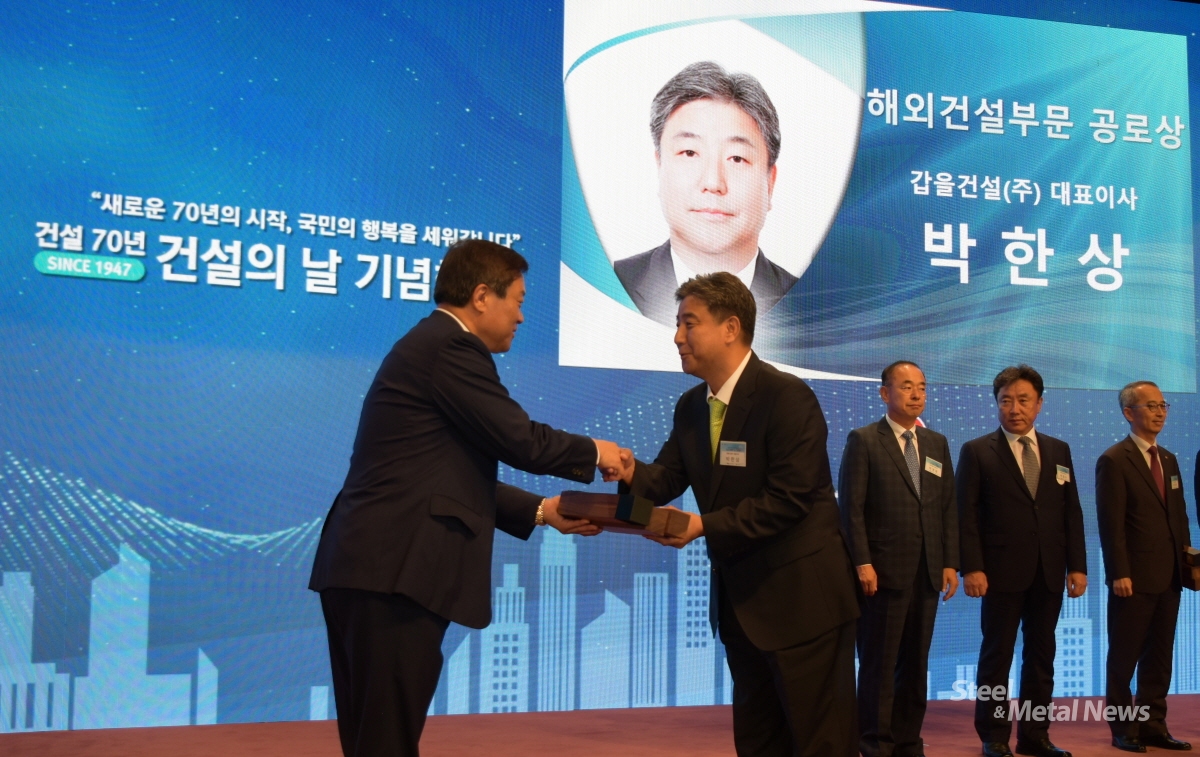 갑을상사그룹의 건설계열사인 갑을건설 박한상 대표이사가 20일 개최된 '건설의 날' 기념식에서 산업발전 공로상을 수상했다.