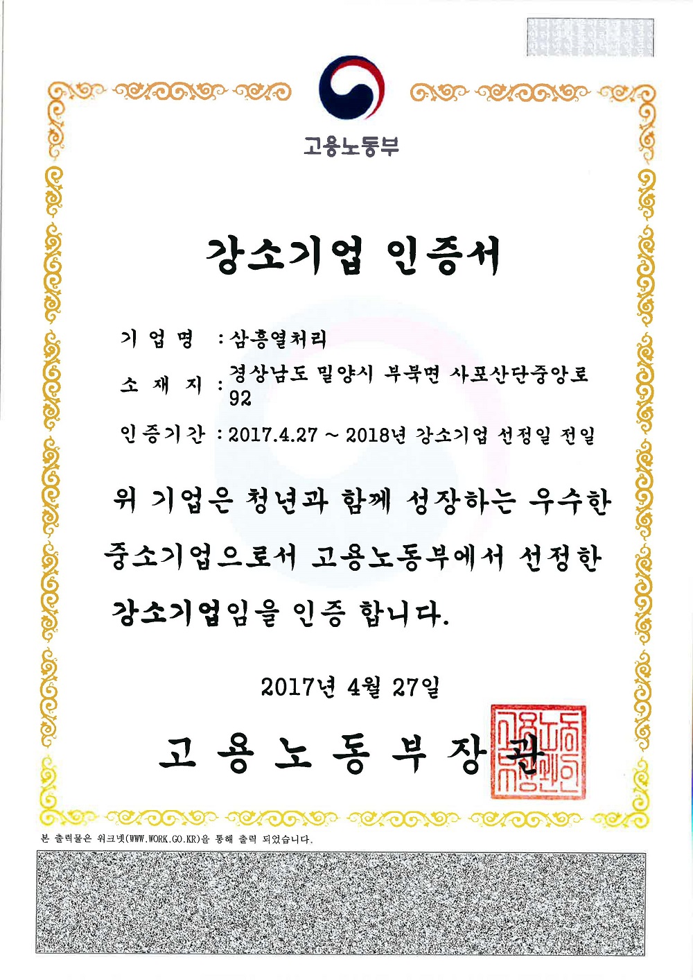 이 강소기업에 단일 규모로는 세계 최대 수준인 경남 밀양의 삼흥열처리가 선정됐다. 지난해 11월에는 중소기업청(현 중소벤처기업부)이 부여하는 ‘뿌리기술 전문기업’으로도 지정된 바 있어 삼흥열처리는 물론, 열처리 업계 전체를 봐도 경사스러운 일이 아닐 수 없다.