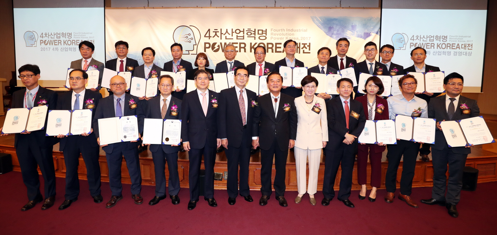 <사진> '2017 4차 산업혁명 경영대상'에서 에어릭스 김군호 대표가(좌측에서 여섯 번째) 수상자들과 기념사진을 촬영하고 있다.