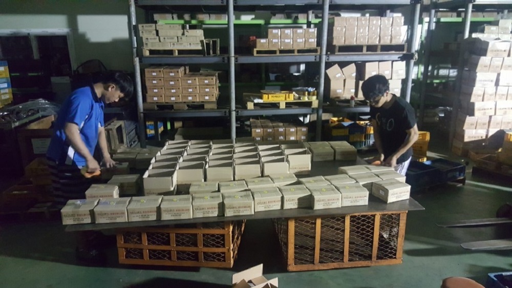 ▲ 용접 부문 경기장인 제주 한림공고에 납품하기 위해 제품별로 포장하는 모습.