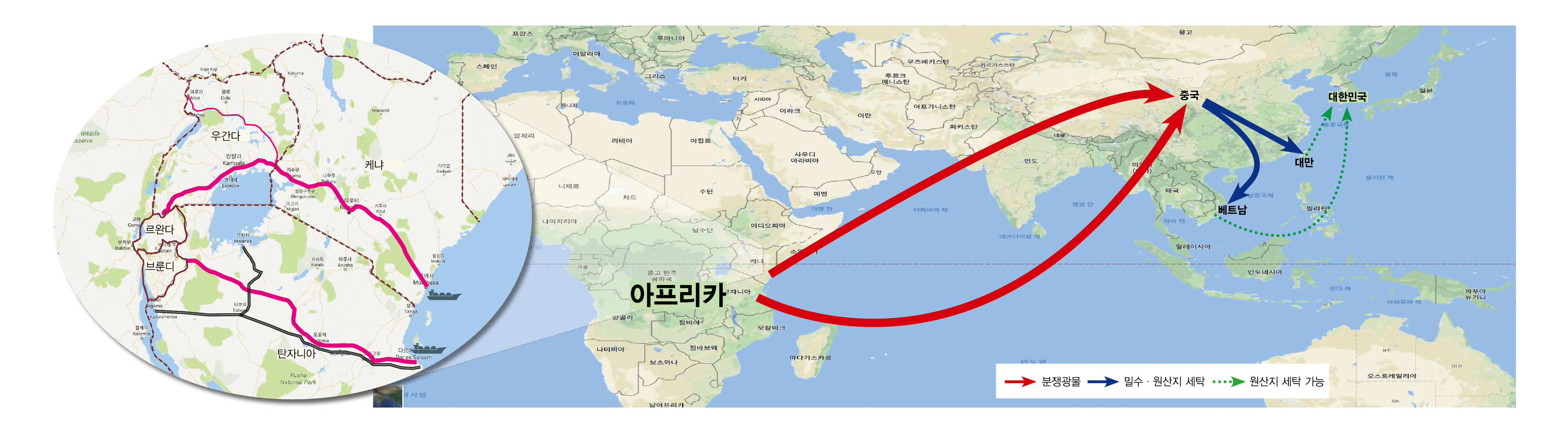 우선 아프리카 분쟁지역에서 생산된 분쟁광물이 동아프리카의 항구에 모여 수출되게 되면 원산지가 달라질 가능성이 있다.