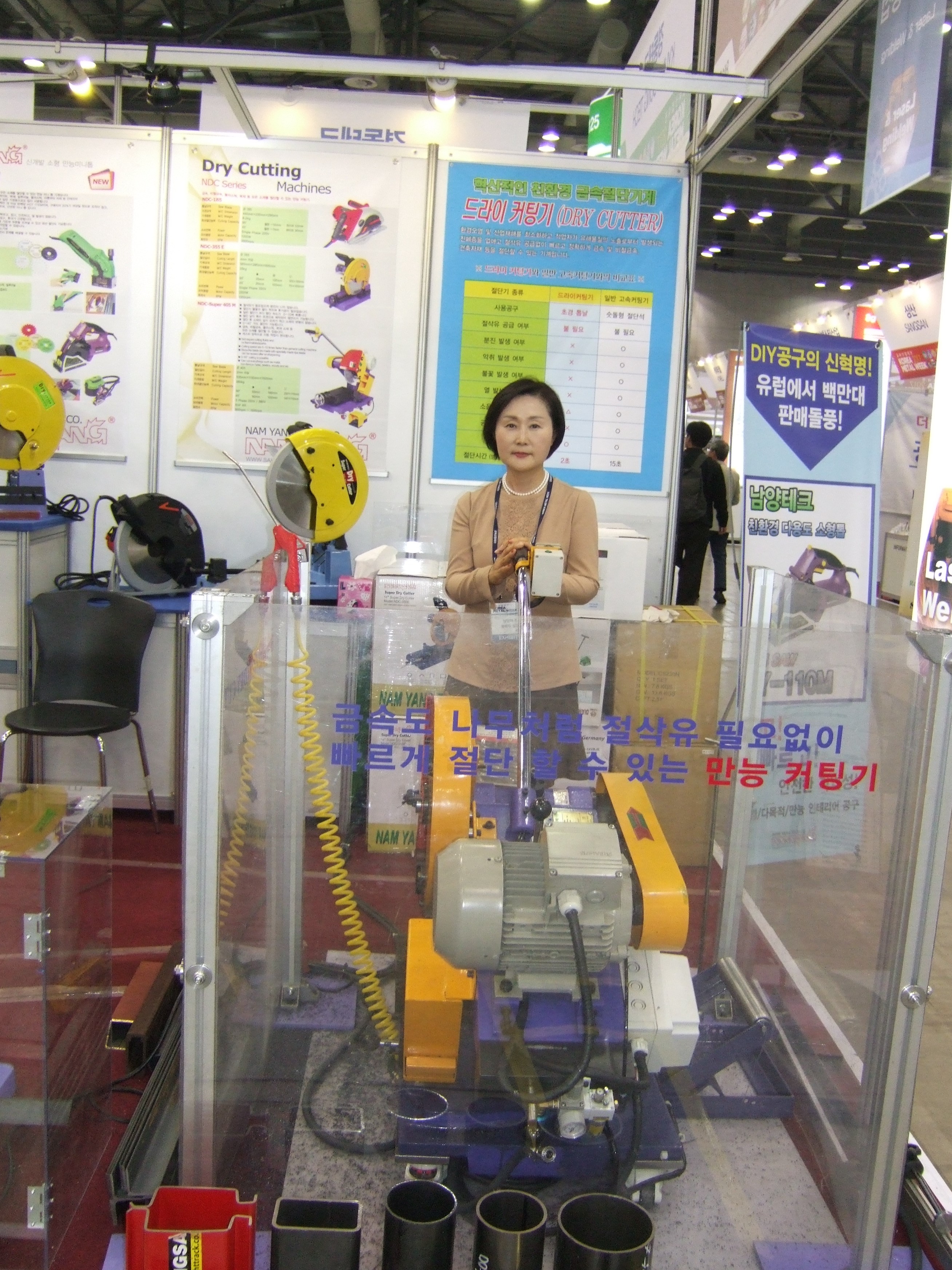 Dry Cutting Machine은 알루미늄(Al), 플라스틱(PVC), 목재, 타이류 등 만능소재 컷팅기로 전시장에서 인기를 모았다.