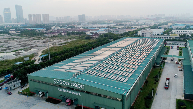 포스코(회장 권오준)가 중국 쑤저우(蘇州)에 위치한 중국통합가공법인(POSCO-CSPC)에 포스맥으로 제작한 태양광 발전설비를 설치했다.