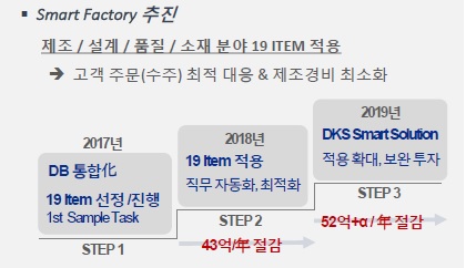 또 동국형 스마트 공장 구현으로 자동화와 품질 향상을 추진하고 있다. 이를 통해 후판 제조원가를 혁신적으로 개선하는 것은 물론 4차 혁명 대응 경쟁력을 높인다는 계획이다. 제조, 설계, 품질, 소재 분야 19ITEM 적용으로 고객 주문에 최적으로 대응하고 제조경비를 최소화한다. 2018년에는 연 43억원, 2019년에는 연 52억원 이상의 절감이 가능할 전망이다.