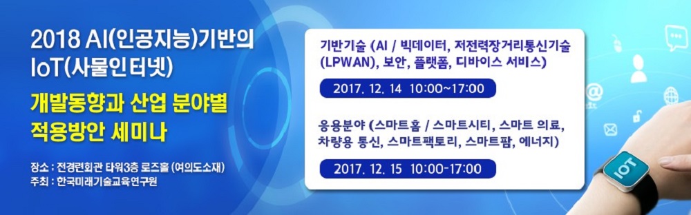 미래기술교육연구원 관계자는 “IoT는 모든 사물을 인터넷에 연결해 실시간으로 데이터를 주고받는 4차 산업혁명의 핵심 기반기술”이라며 “이번 세미나는 IoT와 AI 융합기술을 적용하는 업계 담당자들을 대상으로 다양한 분야의 기술에 대한 정보와 국내외 시장 전망, 비즈니스 전략을 제시해 드리는 유익한 시간이 될 것”이라고 밝혔다.