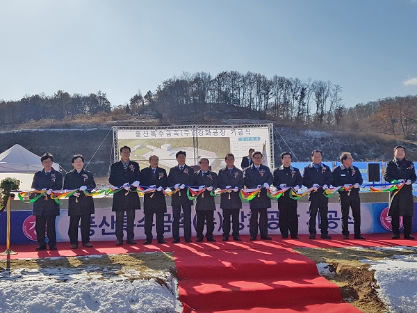 이날 착공식에는 정규원 강화군 부군수, 구영모 인천시 산업진흥과장, 유수동 인천상공회의소 사무국장, 풍산특수금속 신갑식 대표와 임직원 및 지역주민 등 100여명이 참석했다.