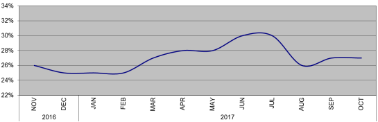 지난 10월 철강 수입점유율은 27%, 완성재 수입점유율은 28%로 계산됐다.