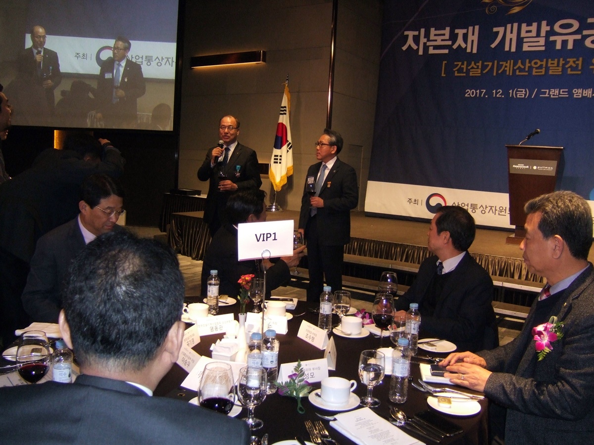 손동연 건설기계산업협회장은 인사말에서 “4차 산업혁명 시대를 맞아 건설기계산업과 4차산업과의 융복합은 이제 선택이 아닌 필수라며, 정부, 대기업, 중소기업, 연구소 모두 소통하고 화합하여 공동 발전의 길을 모색해 나가자”며 “한국 건설기계산업이 세계 4위의 목표를 이룰 수 있도록 다함께 매진해 줄 것”을 당부했다.