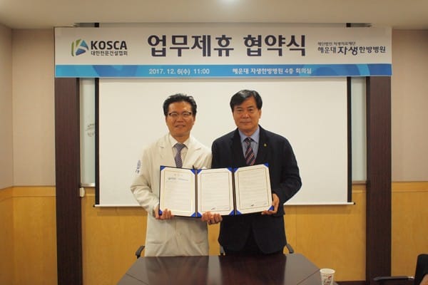 이번 협약을 통해 해운대자생한방병원은 대한전문건설협회에 건강강좌와 척추체조 등 다양한 건강콘텐츠를 제공하는 한편 의료지원도 실시할 계획이다.