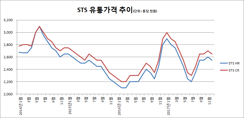 국내 STS 대형유통업체는 12월 가격을 사실상 인하했으며 이후 중소형 업체 역시 가격을 내릴 것으로 보인다.