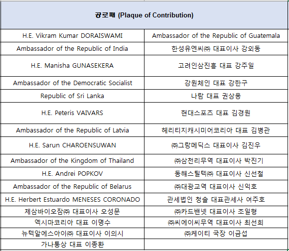 아울러 협회의 각종 사업에 적극 협력해온 주한 외국대사 및 회원사에게 협회장 공로패가 수여됐다.