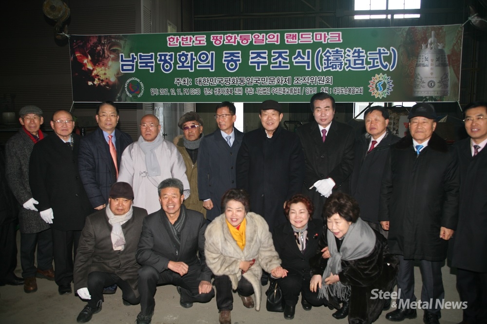 ▲ 애기봉 남북평화의 종 주조식 기념사진. 뒷줄 좌측에서 다섯번째가 원광식 성종사 대표이사. (사진=뿌리뉴스)