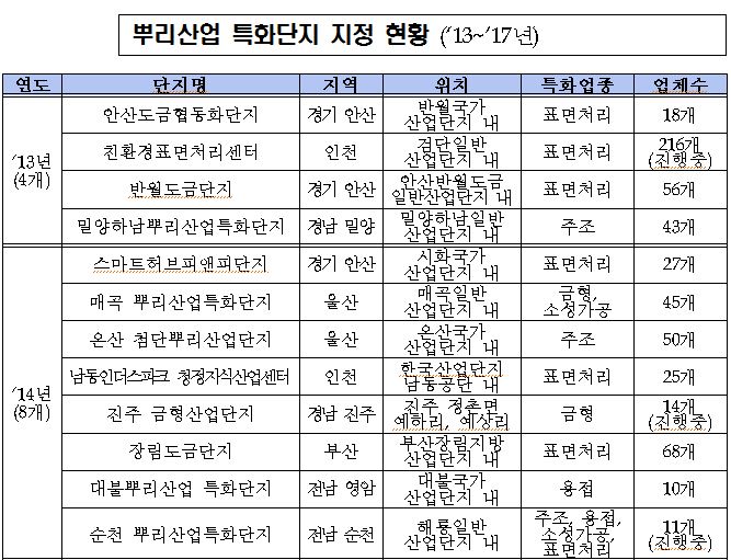 올해 4개 단지가 추가됨에 따라 전국의 뿌리산업 특화단지는 총 25개로 확대했으며, 입주기업도 967개 회사로 확대한다.
