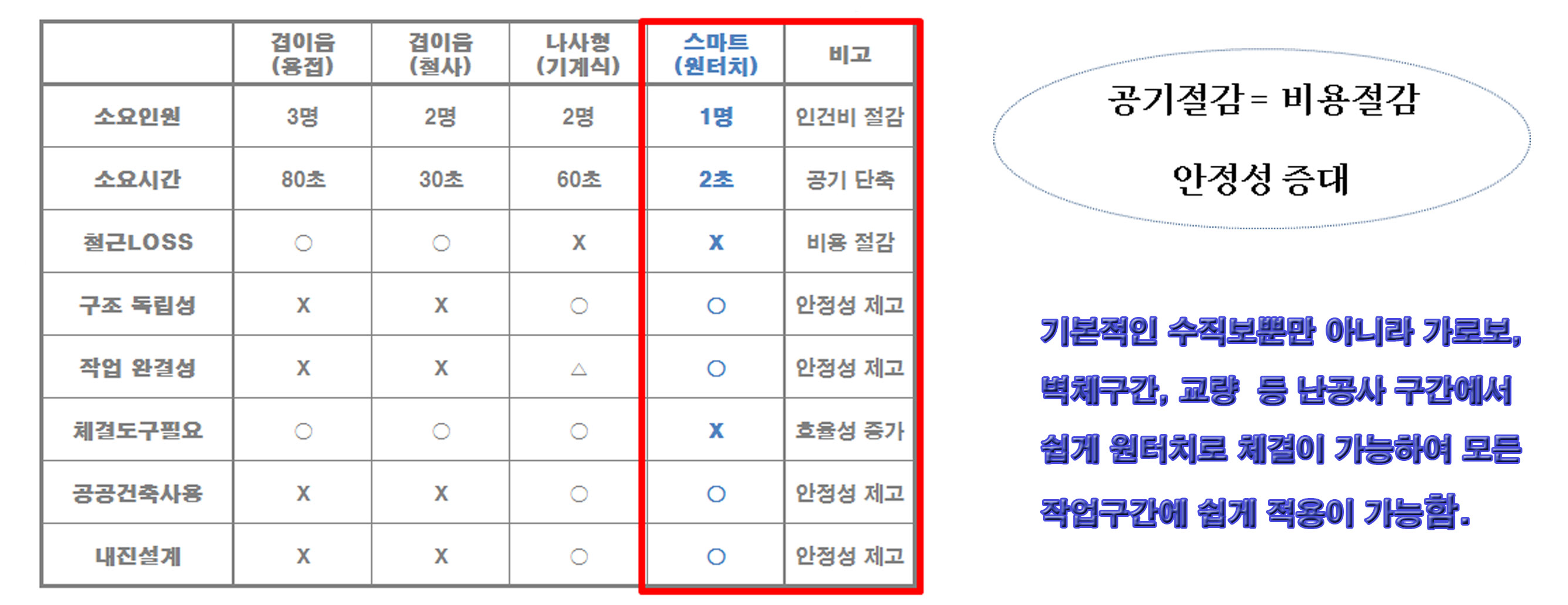 이 커플러는 SD600강종까지 이음이 가능한 점이 인상적이다. 긴급 공정도의 경우도 익일 도착해 즉시 이음이 가능한 장점을 가지고 있다.