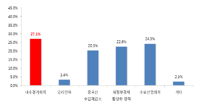 경기개선 요인으로는 국내는 내수경기 회복과 수요산업 경기 회복이 주를 이뤘으며 해외는 중국 철강재 가격상승과 글로벌 경기 회복에 대한 기대감이 많았다.