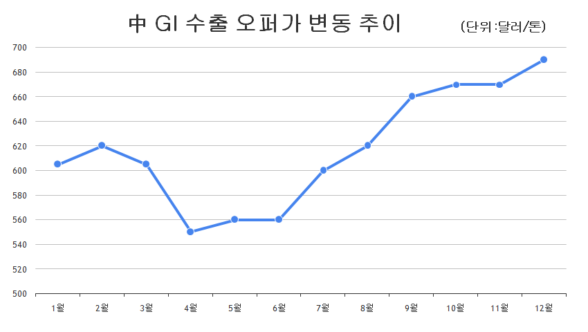 중국 내수가격 급상승이 나타나면서 톤당 700달러를 넘는 것 아니냐는 전망이 나왔지만 톤당 700달러를 넘지 못했지만 고가로 계약 부담은 작용했다. 그러나 1월에도 가격 상승이 이어질 것이라는 전망으로 인해 국내 업계는 계약에 적극적으로 나선 것으로 알려졌다.