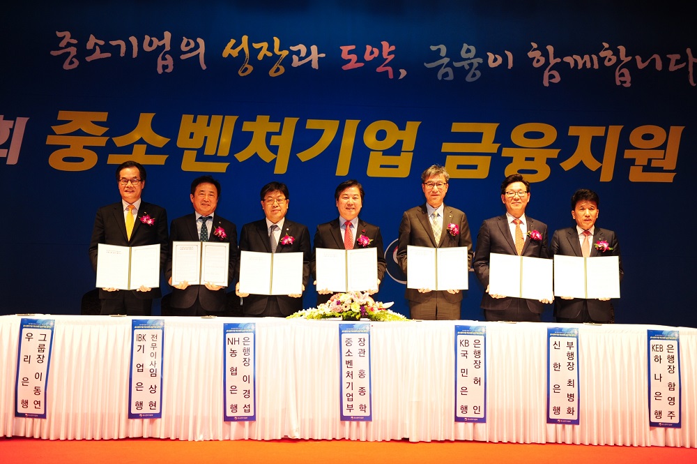중기부와 IBK기업은행, KB국민은행, NH농협은행, 신한은행, 우리은행, KEB하나은행은 공동 협력해 중소·벤처기업에 대한 금융지원을 강화하기로 협약했다.