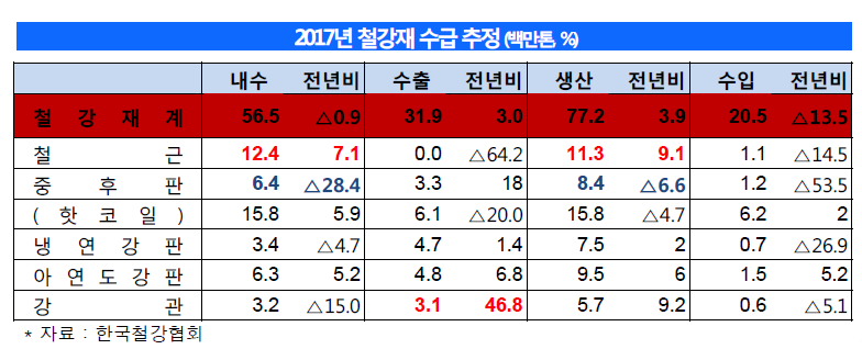 2017년, 생산과 수출이 증가하는 반면, 내수와 수입은 감소할 것으로 보인다.