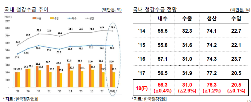 수입 역시 2017년과 비슷한 수준이 될 것으로 전망되지만, 중국 내수가 부진할 것으로 보여 중국산 수입이 늘어날 가능성이 있다고 홍 실장은 설명했다.