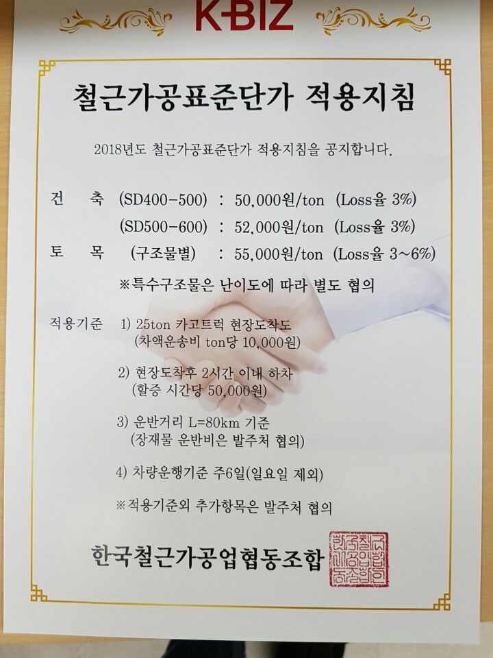 최근 한국철근가공업협동조합은 ‘2018년도 철근가공표준단가 적용지침’을 공식 발표했다. 이를 통해 올해 표준단가와 적용기준 등을 구체적으로 명시한 것.