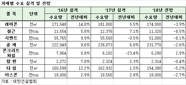 올해는 수주감소, 부동산 규제 정책, SOC 예산 감축 등 영향으로 수요 하락 전망
