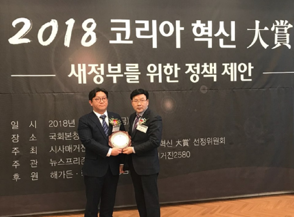 시사매거진 2580이 주최한 2018 코리아 혁신 대상은 2018년 대한민국 경제발전을 이끌 국회의원 및 각 부문별 리더들에게 수상되며, 분야별 전문위원과 교수들로 구성된 심사위원회의 공정하고 엄격한 평가를 통해 선정되었다.
