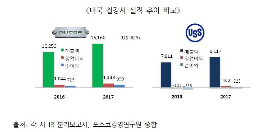 미 행정부의 철강 수입 규제에 따른 반사 이익과 현지 철강 가격 상승의 영향 때문으로 분석된다.