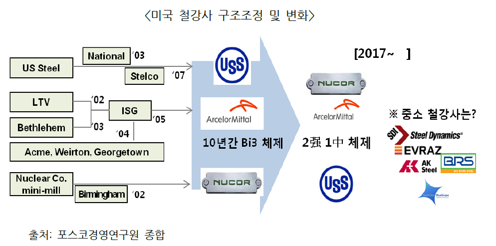 과거에도 유사한 상황에서 미 정부가 수입 규제로 시장 보호에 나섰으나 원가 경쟁력을 회복하지 못한 철강사들은 구조조정 과정에서 피인수 또는 청산절차를 밟기도 했다.