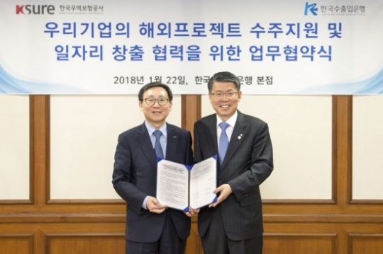 한국수출입은행은 22일 한국무역보험공사와 '해외프로젝트 수주 및 일자리 창출 지원을 위한 업무협약'을 체결했다.